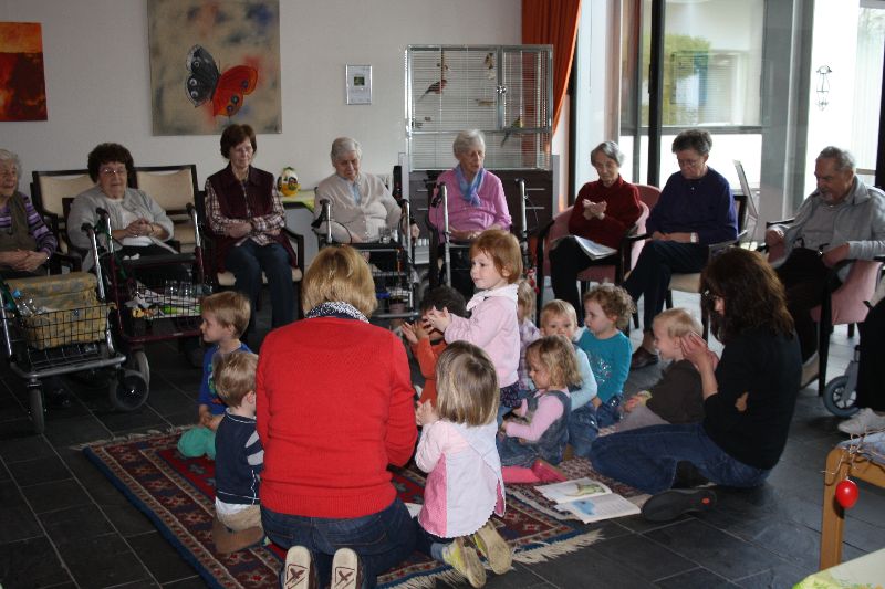 Regelmäßig freuen sich unsere Bewohner freuen über die Besuche der "Kleinen" aus dem benachbarten Zwergenstübchen.